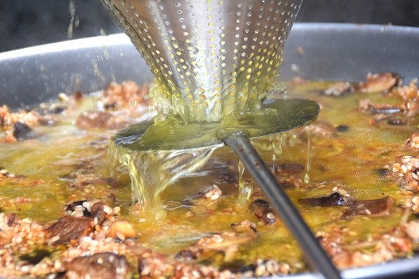 Caldo betekent bouillon of fond, met andere woorden de vloeistof waarin de paellarijst gaart. Alle smaken van de bouillon zelf, de kruiden, het vlees en de zeevruchten die in de pan gebakken zijn, worden op die manier geabsorbeerd door de rijst.